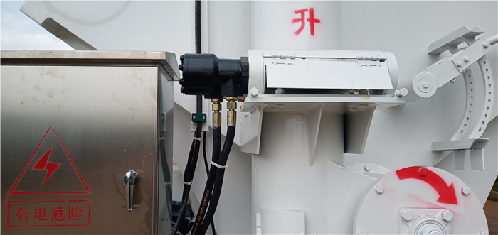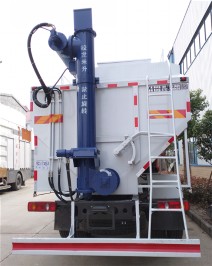 上裝罐體:罐體材質(zhì)采用4mm優(yōu)質(zhì)碳鋼板,整車3條絞龍,由3個5.5KW電機380V外接電源帶動頂部絞龍用液壓控制舉升,可左右旋轉(zhuǎn)180°。罐體內(nèi)分為四個倉,可以獨立控制各分倉卸料順序和速度。(備注:此報價為標配,國產(chǎn)電機,德力西電柜